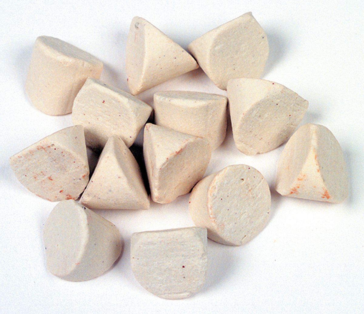 High density ceramic tumbling media.